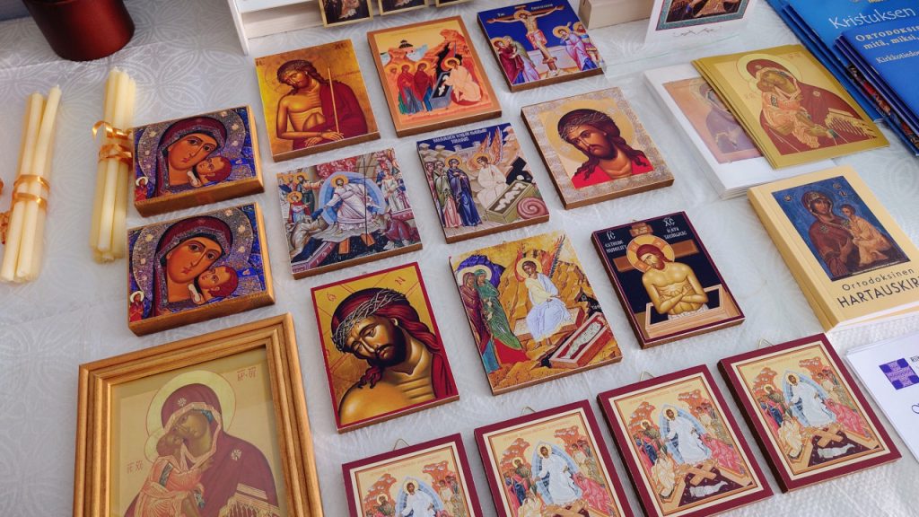 Ostoksia voi tehdä palvelusten ja tapahtumien yhteydessä tai ottamalla yhteyttä Mikko Junekseen 0400 720 896, niin katsotaan sinulle sopiva hetki ostosten tekoon. Myyntituotot käytetään Ortodoksiapiirin ja Minean toimintaan ja sen kehittämiseen.